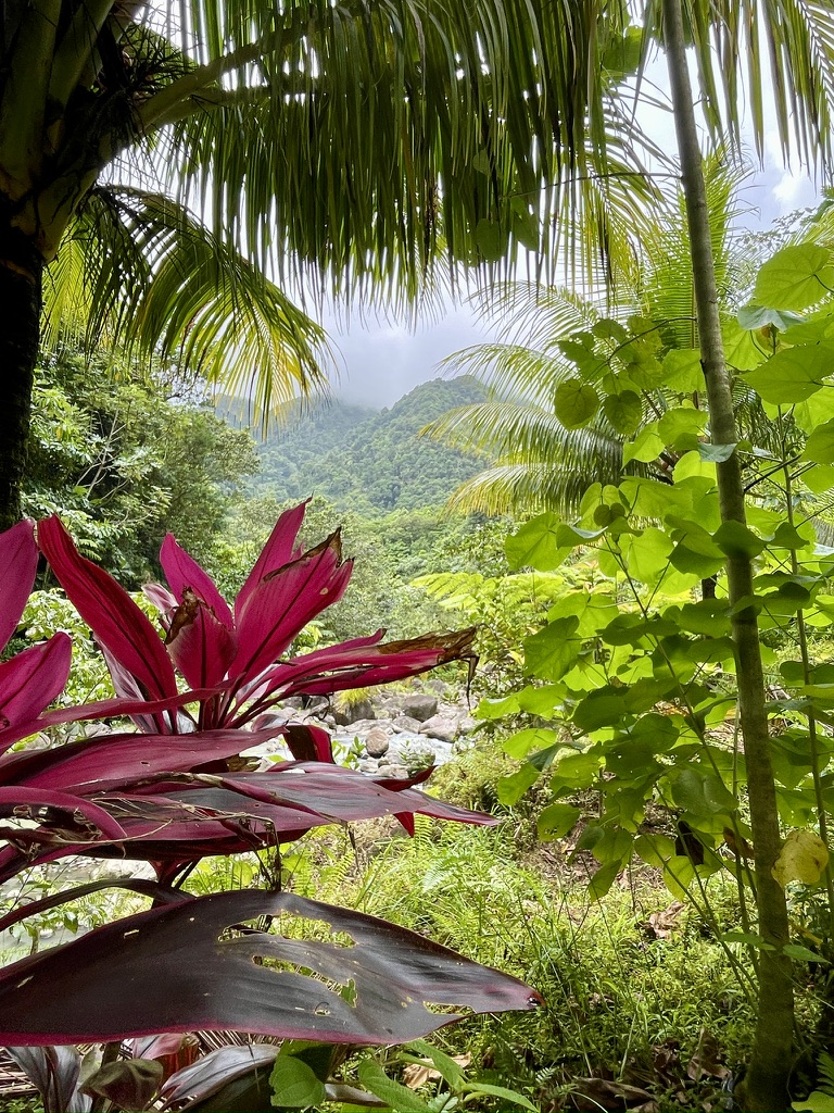 Although Dominica is only a few hours’ sail from Martinique, the contrast was immediate as we stepped onto the only main street in Portsmouth, the island’s second largest city. Chickens and street dogs roamed freely while people sat on low stools or gathered around street corners and shopfronts. Near the main fisherman’s dock, a few fruit and veggie stands offered excellent local produce. Our friends called Dominica the “old” Caribbean, and now I understand why: it has not been taken over by fancy hotels, large modern resorts, and shopping malls. It is anything but posh.