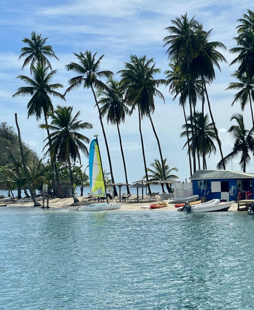 After spending just a few days in Rodney Bay, we sailed down to the famous Marigot Bay. Some consider Marigot the most beautiful anchorage in St. Lucia, and I definitely agree that it is the most photogenic anchorage I have ever visited. Marigot Bay is a well-protected, small bay; however, I wouldn’t consider it an ideal spot for cruisers due to limited space, the requirement to use mooring buoys (anchoring is not allowed), and relatively high fees. Nonetheless, we enjoyed our time there. It seemed that no matter where one points the camera, one can capture a quintessential Caribbean scene in Marigot.